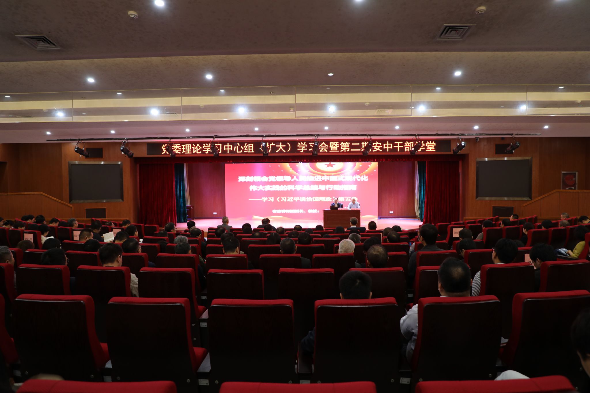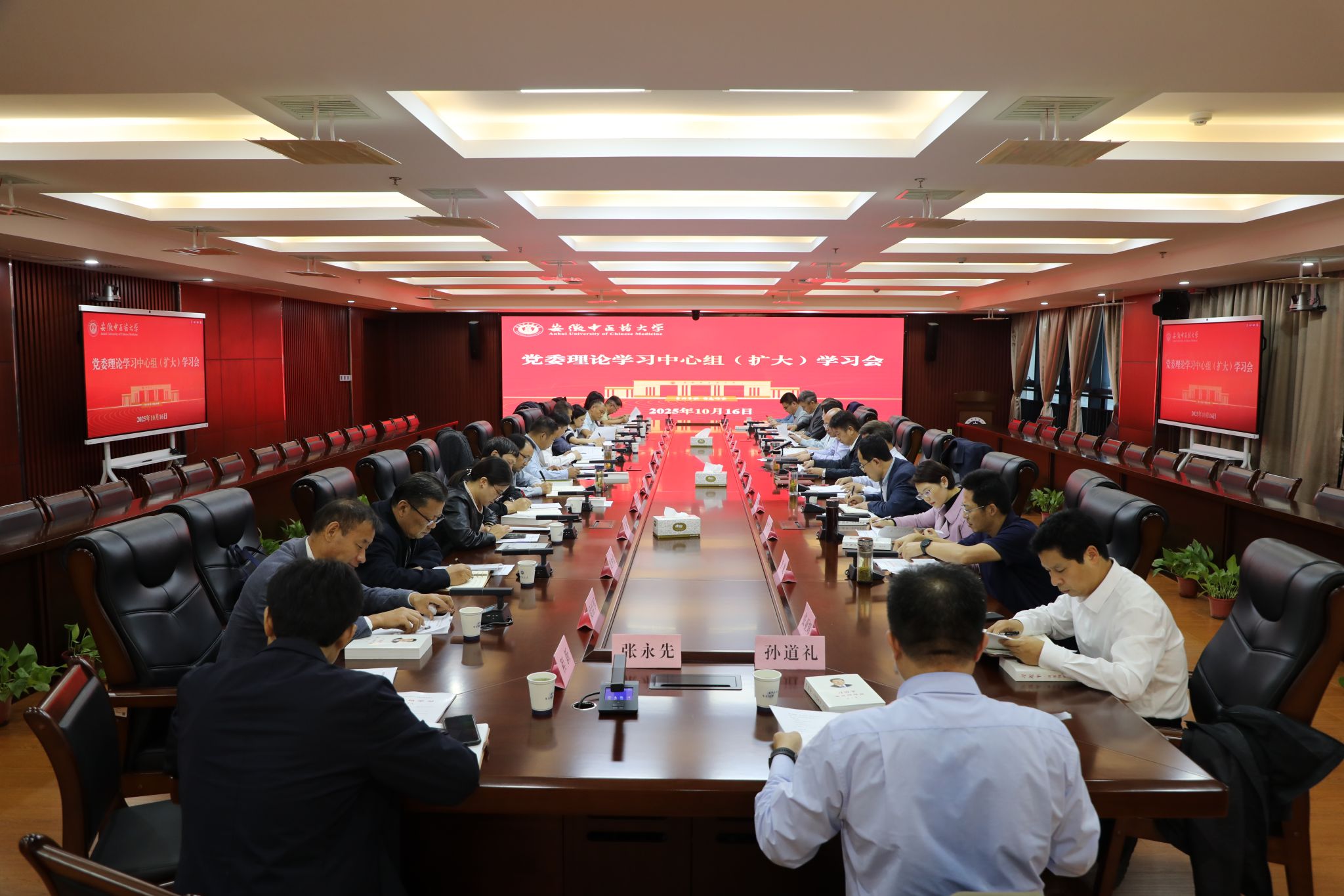 10月16日下午,学校举办党委理论学习中心组(扩大)学习会暨第二期安中干部学堂,围绕“深学细悟《习近平谈治国理政》第五卷,重温习近平总书记考察安徽重要讲话精神,全面贯彻新发展理念、深度融入新发展格局,开拓创新、实干笃行,奋力谱写一流中医药大学建设新篇章”主题,开展学习研讨。校领导班子成员、全体处级干部、校本部正科级干部、年轻干部等参加学习会。
