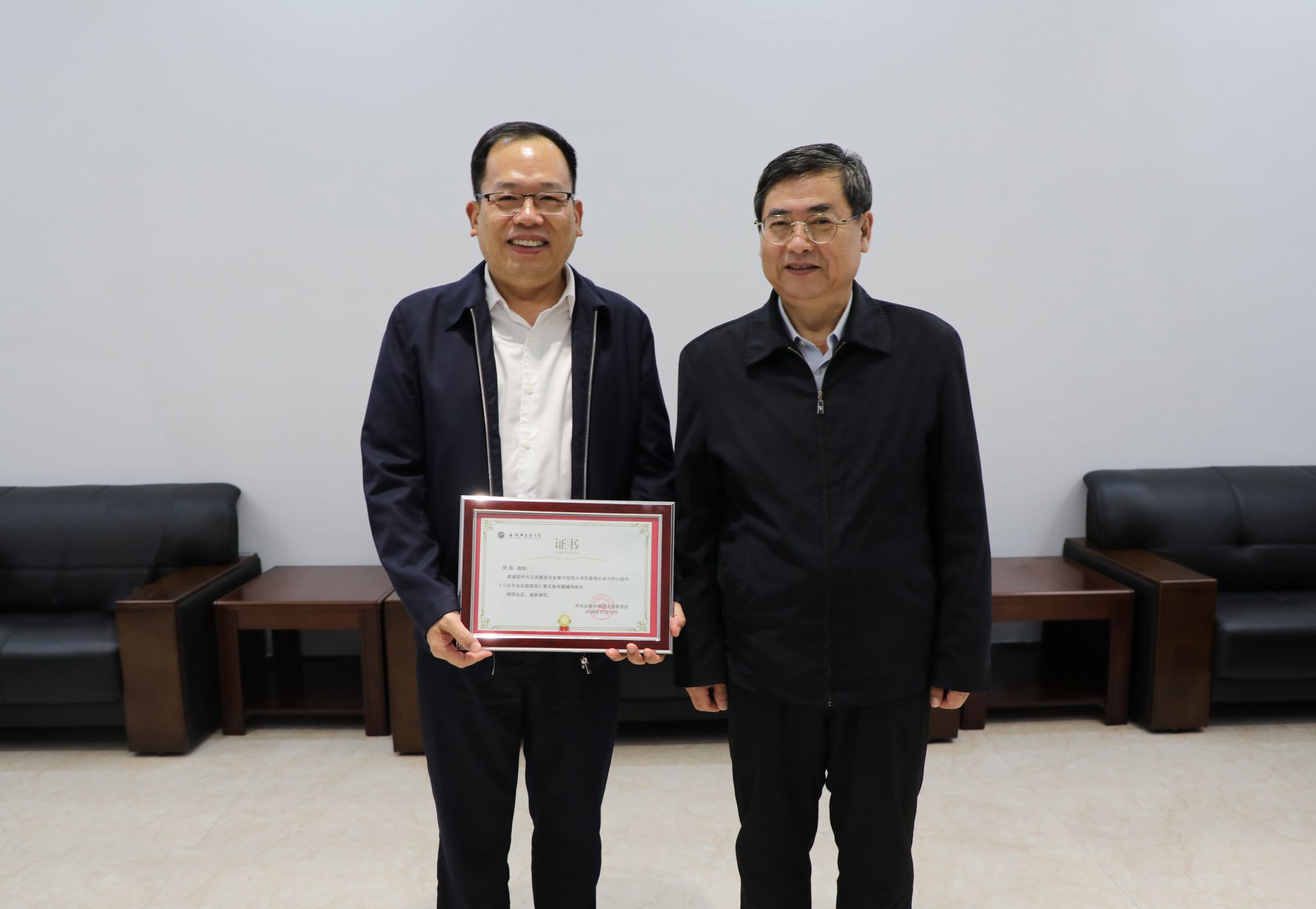 报告会前,学校党委书记谢瑞瑾会见了张彪,为其颁发“主讲嘉宾”感谢证书。