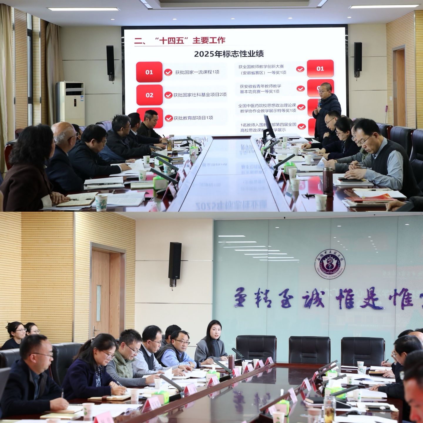 会上马克思主义学院执行院长郭跃汇报了“十四五”时期学院的发展情况、取得的重要成就、存在的突出问题以及“十五五”期间建设发展目标,教师代表李秋晨从专职思政课教师角度,交流了守正创新上好思政课的心得体悟。