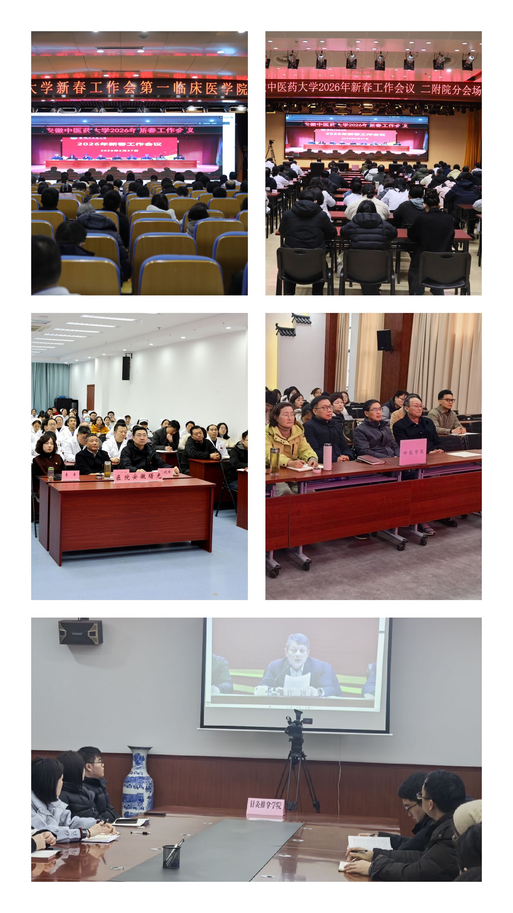 2月27日下午,学校召开2026年新春工作会议,传达安徽省两会、省“新春第一会”、省教育工作会议、省春节团拜会等会议精神。校党委书记谢瑞瑾主持会议并讲话,党委副书记、校长许钒等全体校领导、党委常委参加会议。