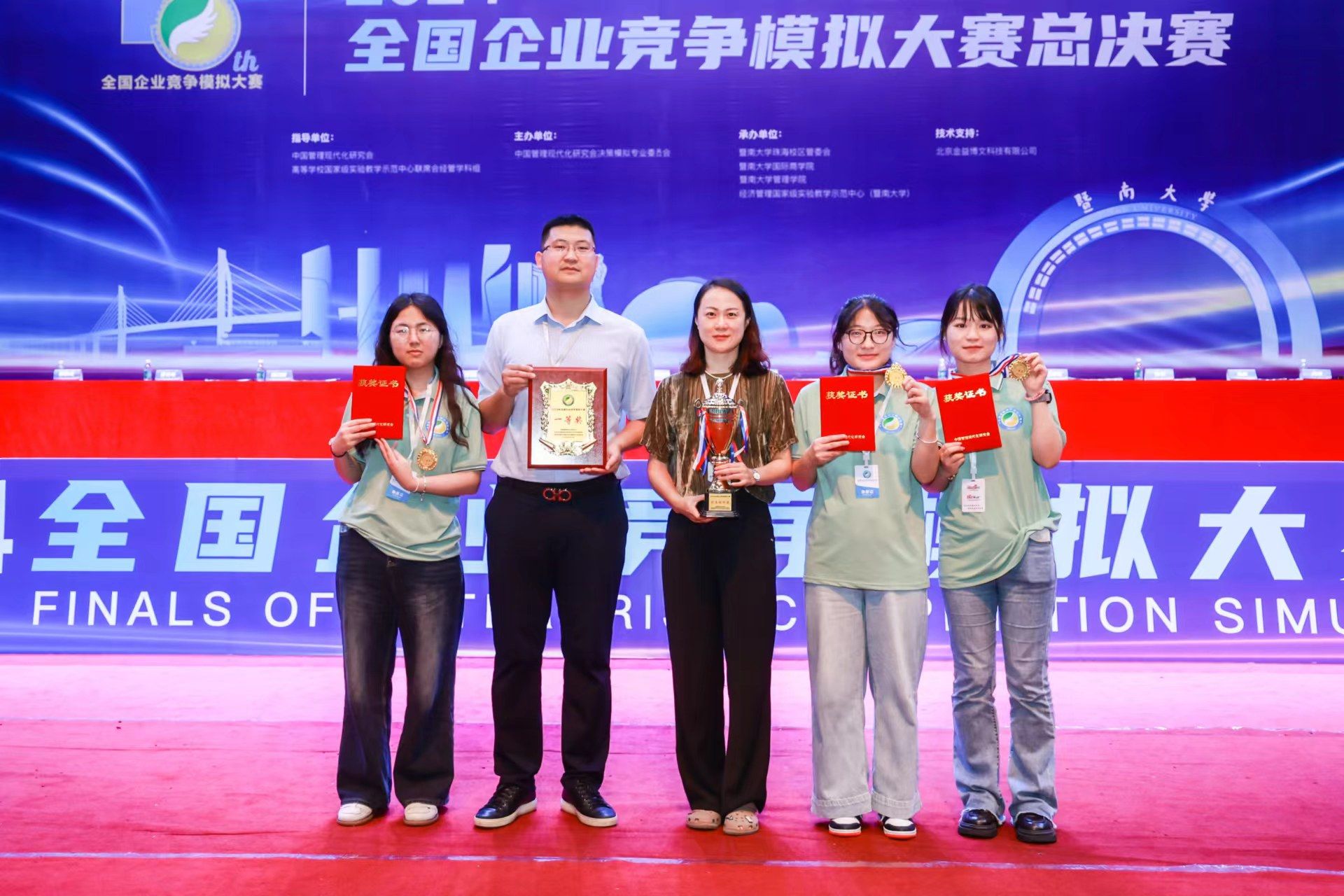 5月25日,2024年全国企业竞争模拟大赛总决赛在暨南大学珠海校区落幕。本届大赛由中国管理现代化研究会、高等学校国家级实验教学示范中心联席会经管学科组指导,中国管理现代化研究会决策模拟专业委员会主办,暨南大学承办。本次比赛研究生组共计131所学校601支队伍参加,是历年最多,难度最大。经过全国复赛的激烈角逐,来自北京大学、浙江大学、南京大学、吉林大学、天津大学等高校的22支队伍晋级总决赛。我校医药经济管理学院社会医学与卫生事业管理专业研究生“海底小纵队”(陈文静、王梦、欧阳亚如)代表队获得总决赛一等奖。安徽中医药大学获优秀组织奖,学院邰蕾蕾、李志广老师被评为优秀指导教师。