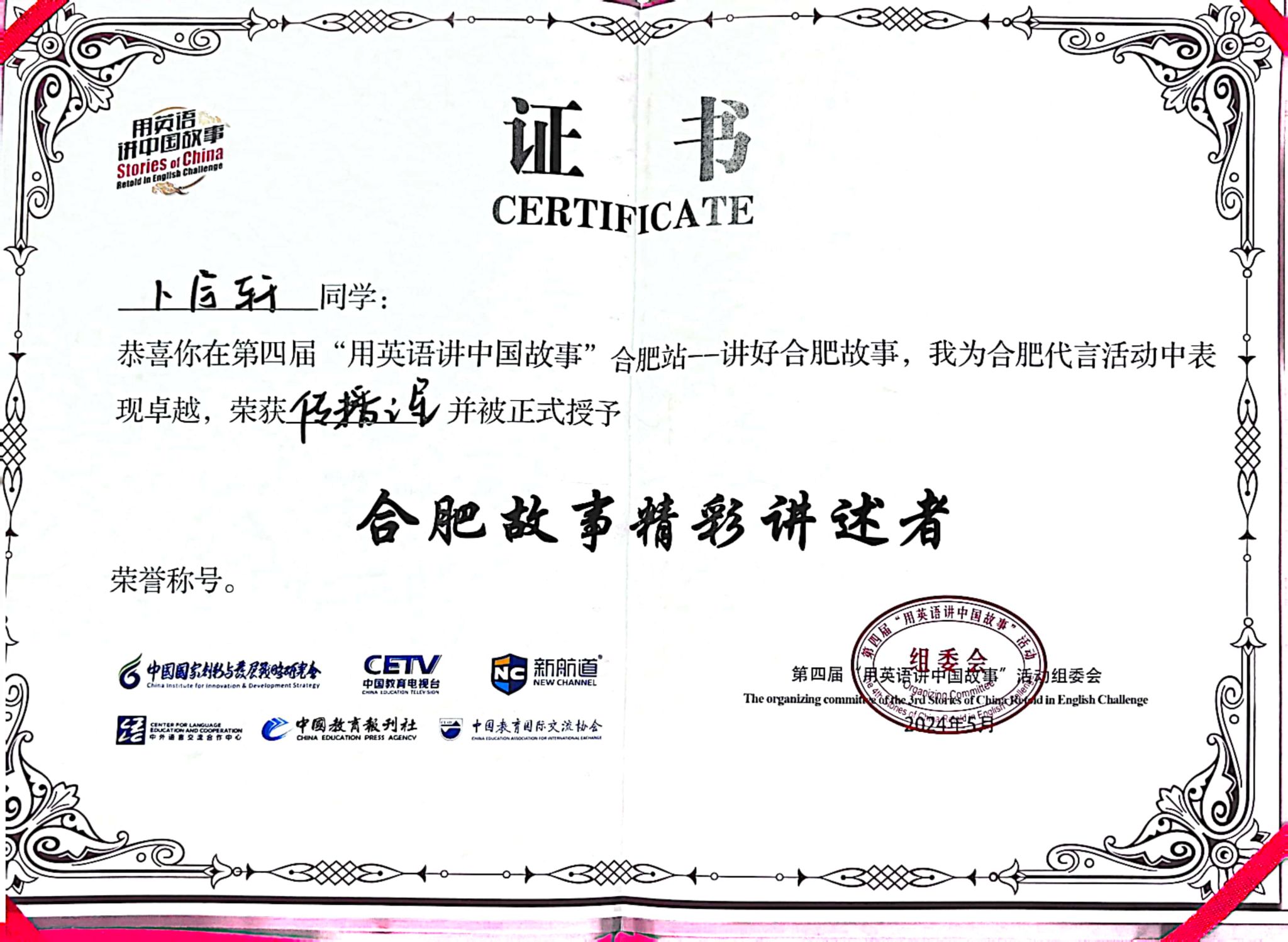 5月25日,由中国国家创新与发展战略研究会、中国教育电视台和新航道国际教育集团联合主办的第四届“用英语讲中国故事”活动合肥站城市展演决赛暨颁奖典礼举行。经过初赛、复赛,来自中国科学技术大学、合肥工业大学、安徽大学等十几所高校选送的26名同学进行了精彩的英语演讲和才艺展示,用流利的英语向世界传递中国故事,展示了合肥的“文里文气”与“科里科气”。
