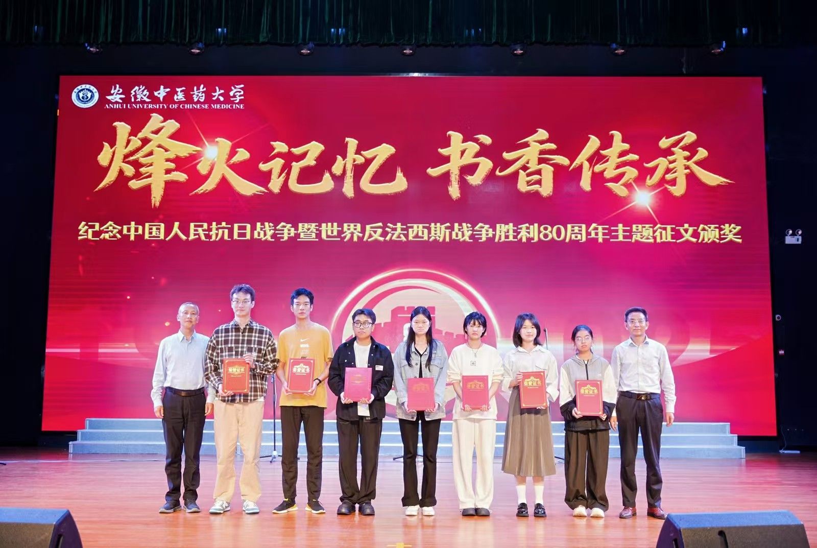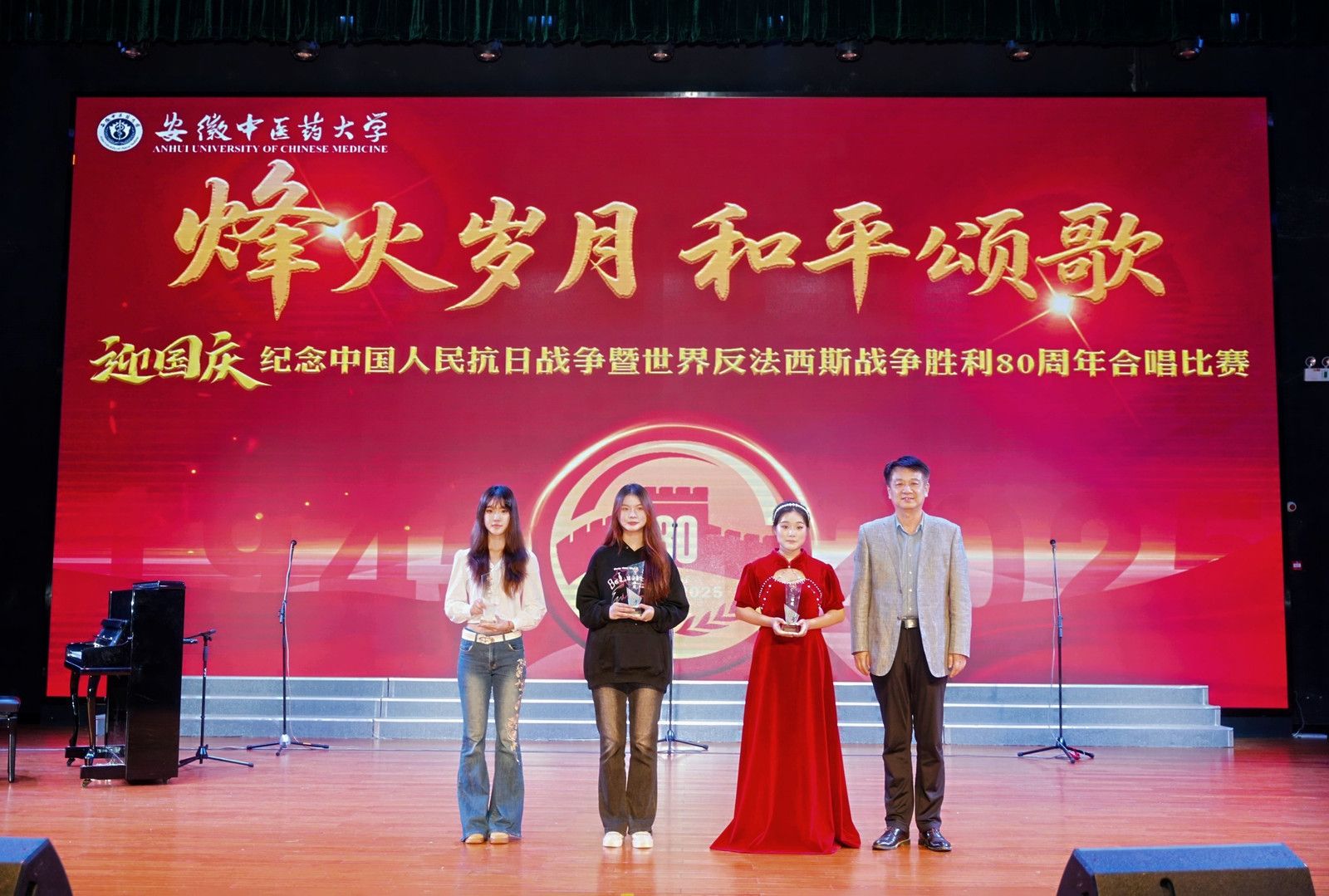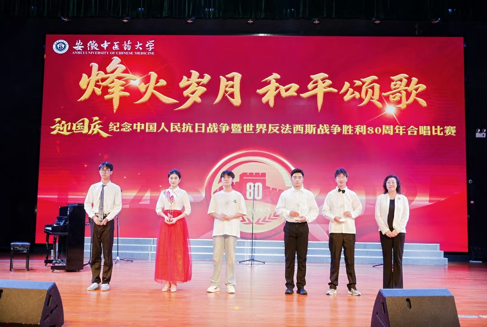比赛期间还举行了“烽火记忆 书香传承”主题征文颁奖,进一步丰富了活动内涵。整场活动不仅是一场红色旋律的艺术盛宴,更是一堂生动的爱国主义思政教育课,激励广大师生在歌声中铭记历史、珍爱和平、砥砺前行,凝聚起奋发向上的精神力量。(李睿、孟南、徐慧/文 校团委/图 彭程/审核)