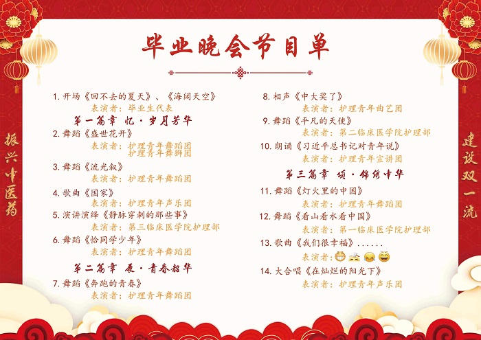 今年,护理学院为全体毕业生准备了一套学(硕)士服、一只护士表、一套个性印章、一份寓意美好的远志、当归种子和一台毕业晚会。为了爱、表达爱,希望全体毕业生在未来的工作岗位上传递爱。拍摄结束,护理学院还为赶赴医院参加面试的二十几名毕业生安排了“送考”专车。