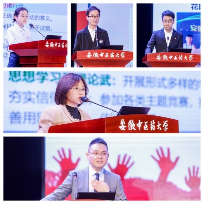 宣讲会上,针灸推拿学院辅导员项水英老师以《赤诚释初心,砥砺践使命》分享了所带2020级康复治疗学1班团支部获得省级“活力团支部”的有益经验;安徽省“十佳百优大学生”候选人、中西医结合学院2019级中西医结合6班贺雅婷同学讲述了自己“知不足而奋进 望远山而力行”的成长故事;西部计划优秀志愿者、医药经济管理学院2016级人力资源班朱伟同学分享了自己“以青春为名 赴西部之约”的志愿服务故事;第十七届全国大学生年度人物提名、针灸推拿学院2019级针灸推拿学2班李洪涛同学以《用热爱,点亮坚持之火》分享了他的青春励志故事;中国青年志愿者优秀个人、江苏青年五四奖章获得者、学校2015届中医妇科学优秀校友周瑞医生以《奋斗者 正青春》分享了他16来年对志愿服务的坚持、热爱与思考,为广大青年师生上了一堂生动而深刻的青春思政课。