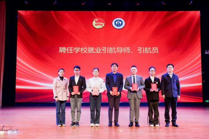同时,为落实好学校共青团促进大学生就业工作,校团委聘任了全国“挑战杯”优秀指导教师彭青和等优秀就业创业典型和优秀校友为就业“引航导师”和“引航员”,并为他们颁发聘书。