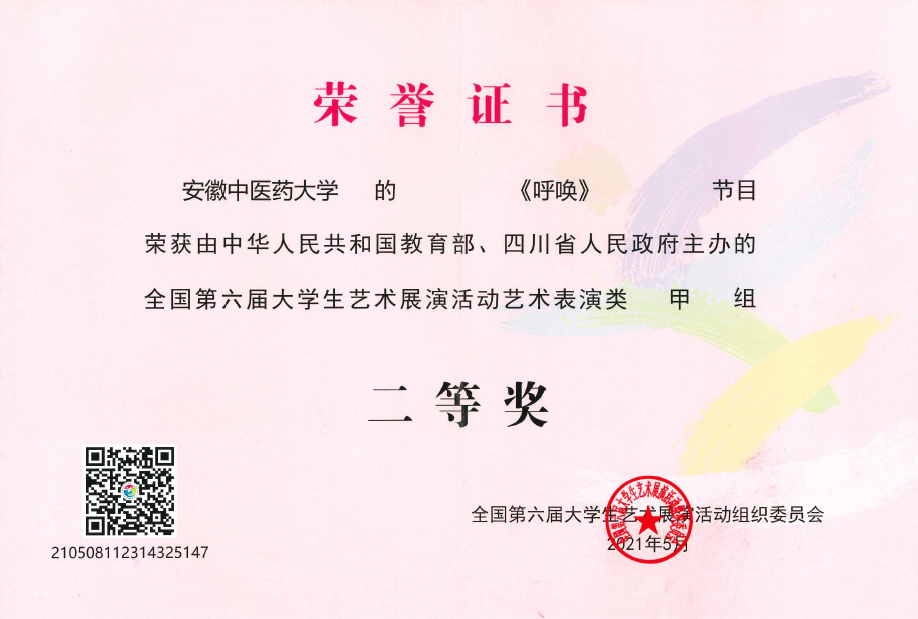 日前,由教育部、四川省人民政府主办的全国第六届大学生艺术展演活动落下帷幕,我校报送的原创作品交响乐《呼唤》(指导教师、创作者:孟南;表演者:朱羽、朱子航、余诺等)荣获艺术表演类全国二等奖。