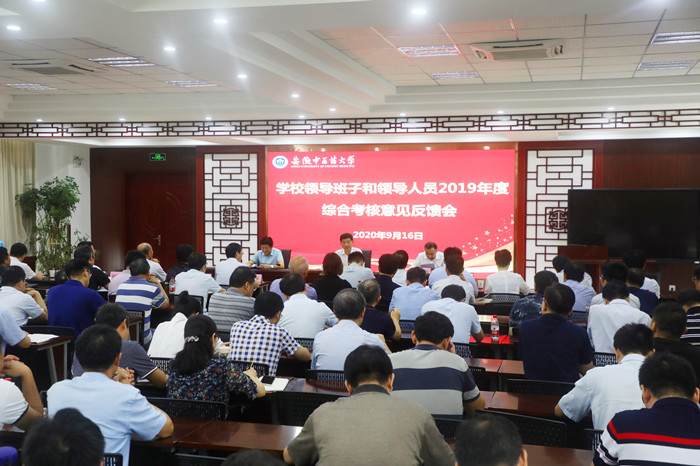 9月16日上午,省委第十五考核组组长庆承松向我校反馈2019年度省管领导班子和领导干部综合考核情况,并宣布我校领导班子以及校领导王先俊、彭代银2019年度综合考核为“优秀”等次。省委第十五考核组成员、省委组织部党员电教中心一级科员杜松檑出席会议。学校党委常委、领导班子成员、机关处室处级干部、院部及二级机构党政主要负责人、教师代表等参加会议。校党委书记王先俊主持会议。