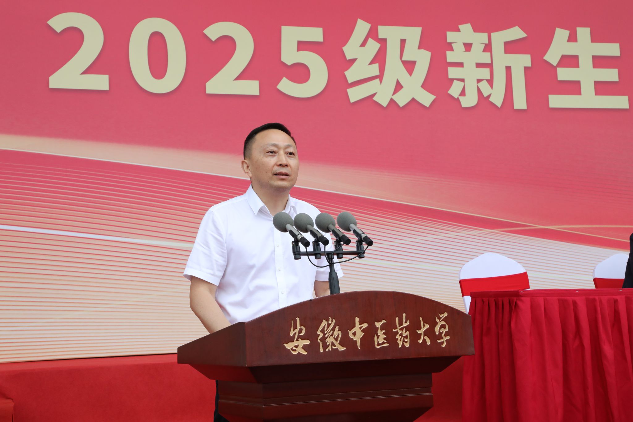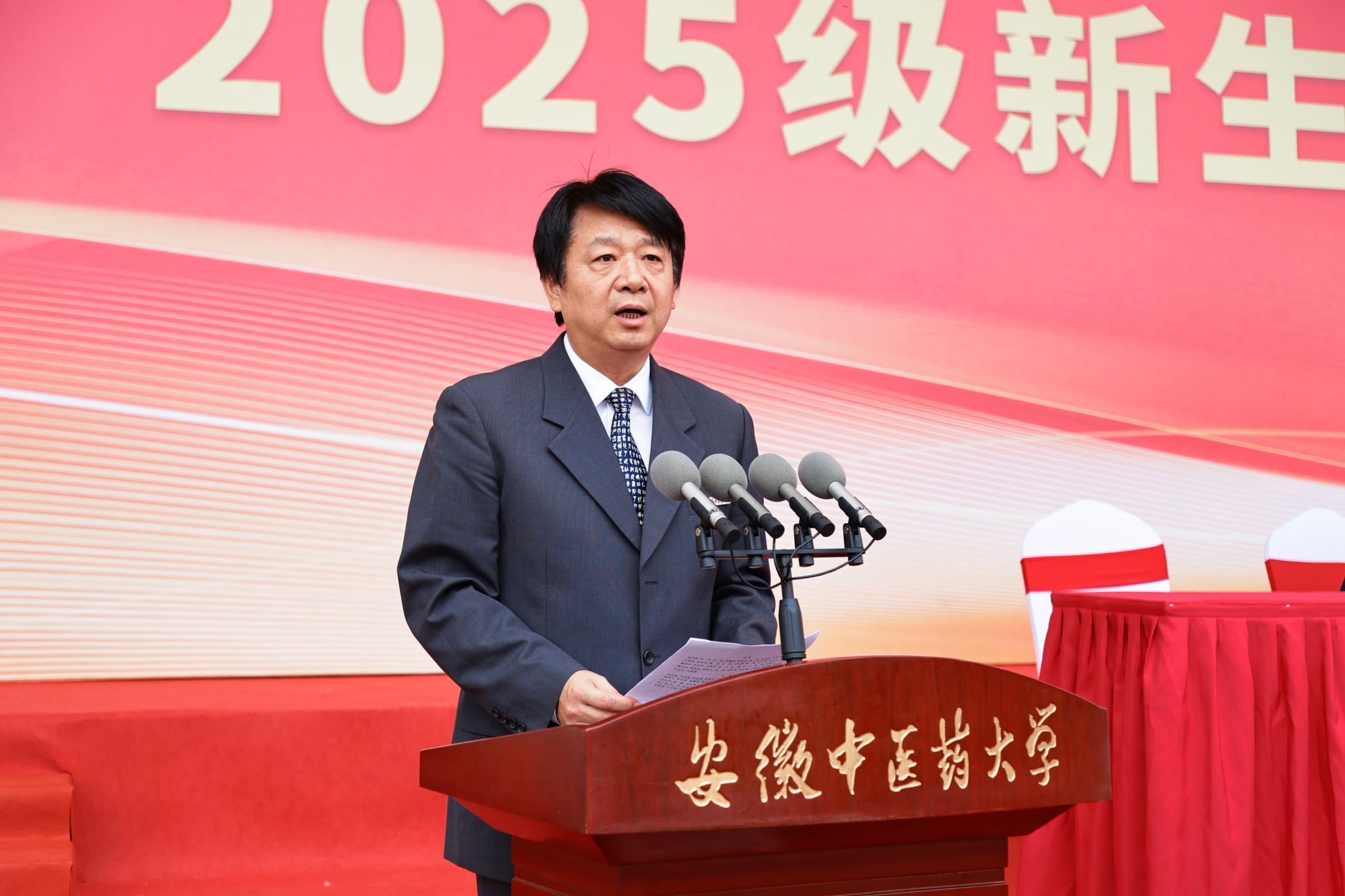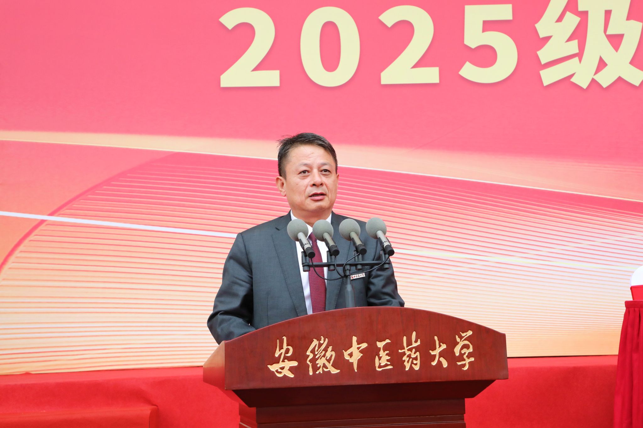 校党委副书记、校长许钒发表了热情洋溢的讲话。他勉励新生从中药“升降浮沉”中悟成长之道,于“酸苦甘辛咸”中品人生真味,让青春梦想与学校发展、中医药振兴和民族复兴同频共振、共创辉煌!