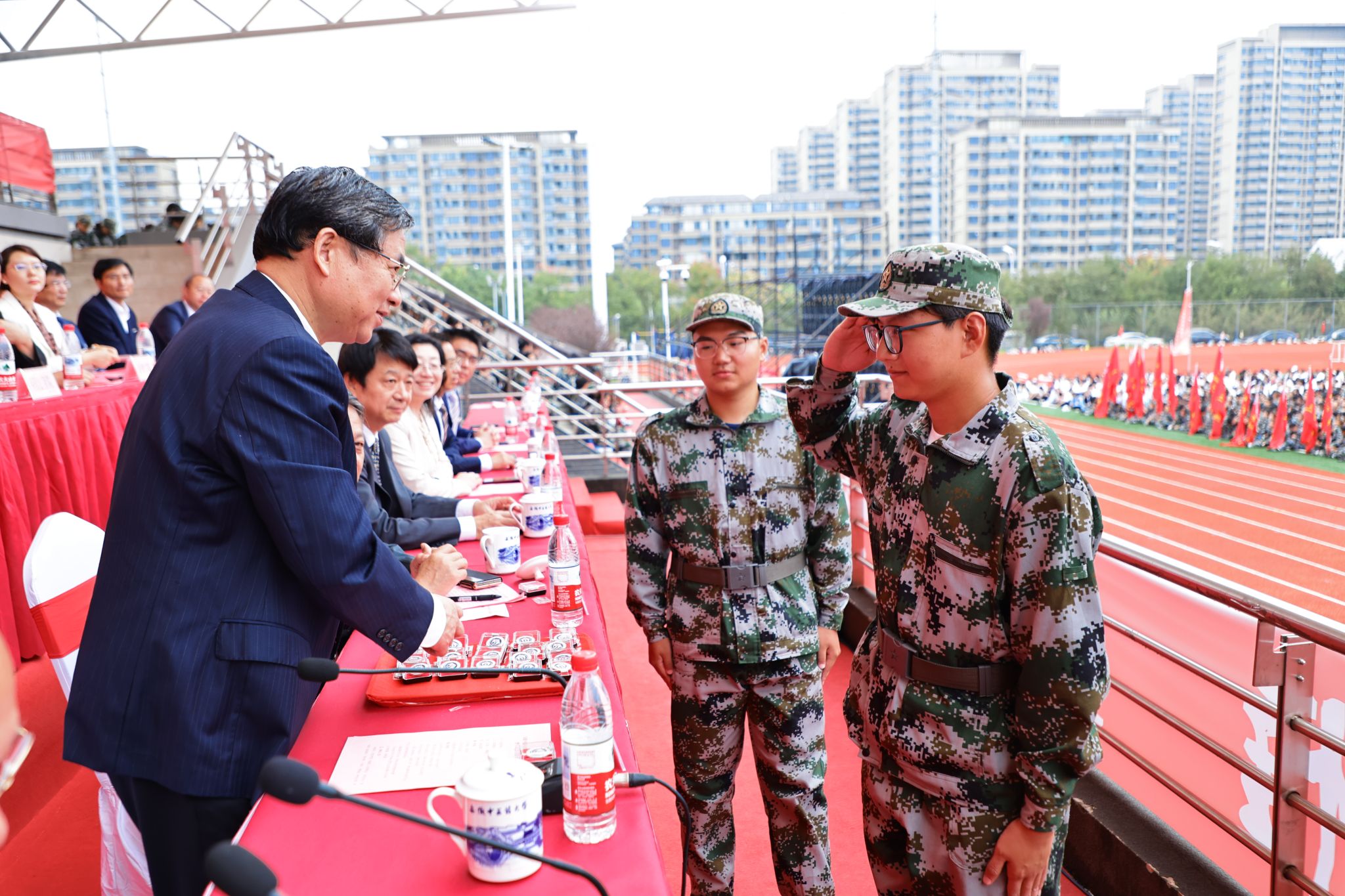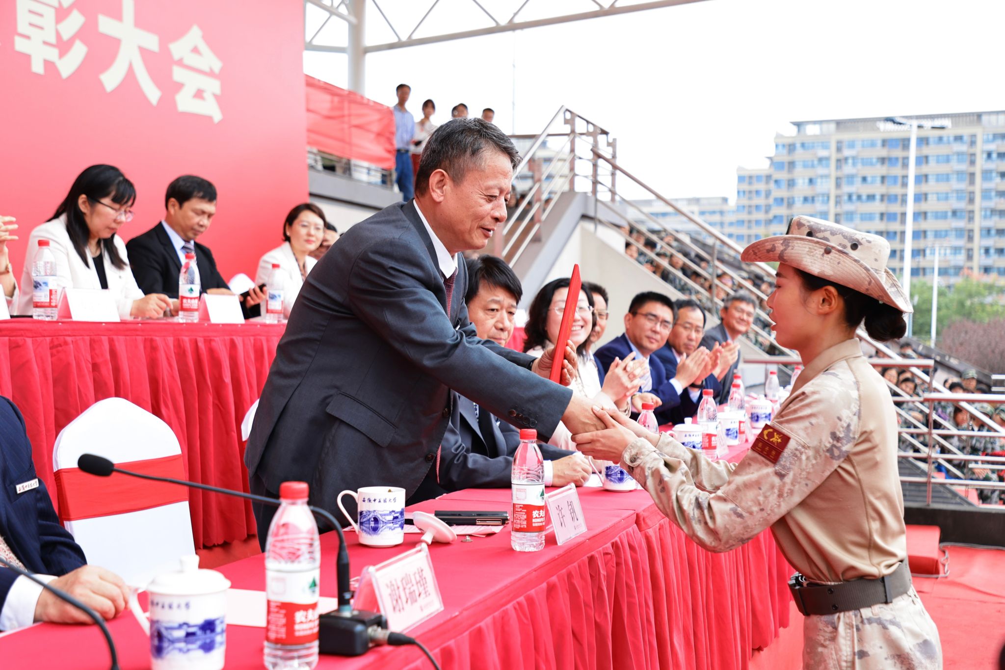 校党委书记谢瑞瑾宣布军训成果展示开始